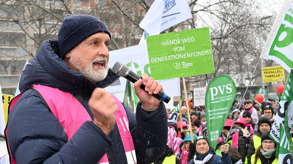 Der Landesvorsitzende des Sächsischen Lehrerverbandes SLV Michael Jung hob hervor, dass der öffentliche Dienst ein Bollwerk gegen den Extremismus sei: „Wenn die politischen Ränder erstarken, muss der öffentliche Dienst seine Leistungsfähigkeit zeigen. Die Bürgerinnen und Bürger wollen sehen, dass das Land funktioniert. Bildung, Verwaltung, Infrastruktur, Sicherheit – das liegt doch auch im Interesse der Politik.“